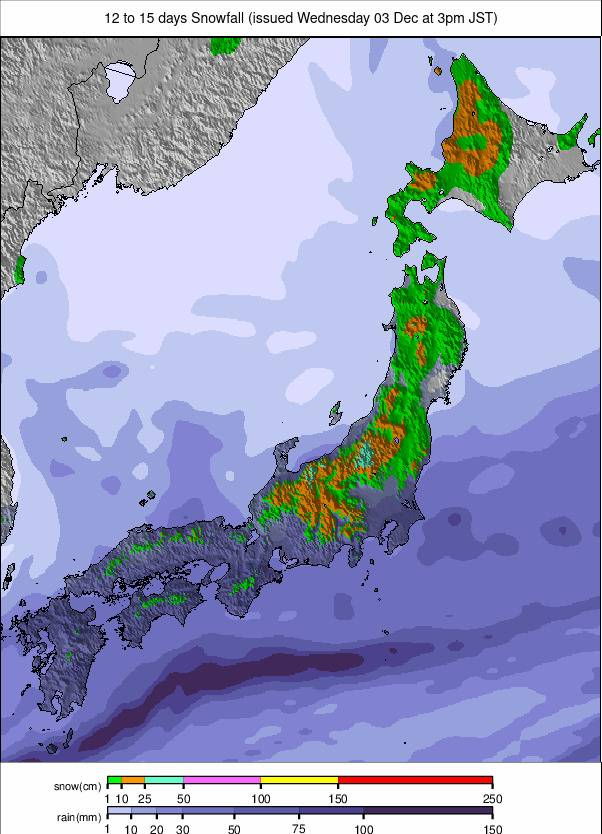 Up on Hokkaido, it remains even colder, with ski areas showing summit temperatures between –12°C and –20°C. Light, frequent snow showers continue through the week, accumulating steadily thanks to consistently sub-zero conditions. Visibility will vary with passing fronts.